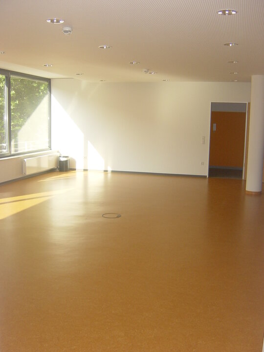 Das Raumgefühl wird hierbei von den zwei Säulen an der Wandseite nicht beeinträchtigt. Zugänglich ist der Emil Fein- Raum vom Gang aus von zwei Seiten.